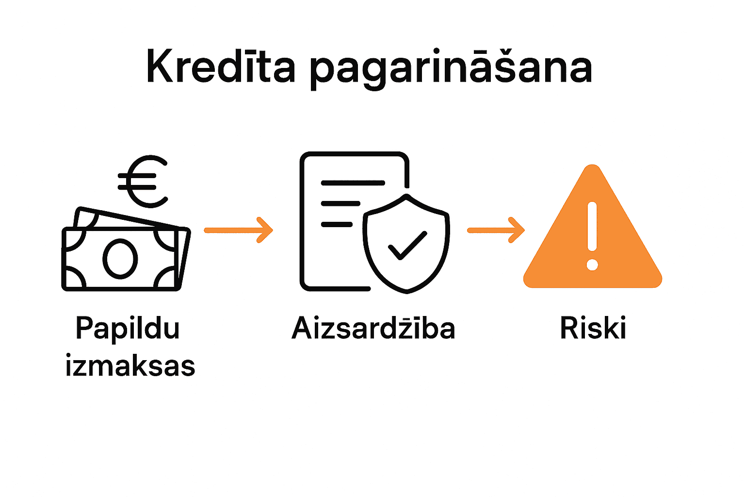 Pagarināšana ietver papildu maksājumus, kas var palielināt kopējās kredīta izmaksas. Patērētājiem jāapzinās visus potenciālos izdevumus.